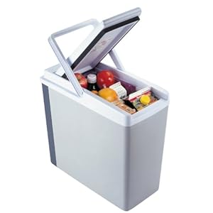 Coolers are usually large and unwieldy, which is why Koolatron developed the Compact Kooler, specially designed to fit in the snug spaces behind the seats of many cars, trucks, and vans. Like many of Koolatron's coolers, this unit features a 12-volt cooling system that plugs into a car's cigarette lighter. The cooler's motor blows cold air over your food and beverages, keeping them 40 degrees F cooler than the outside temperature. The cooler also doubles as a warmer, if you'd rather keep the contents toasty. Outside of the car or truck, the cooler is still versatile, with a swinging, foldaway handle for easy portage and a latchless lid that opens with one hand. Other handy features include a convenient cord wrap and a unique storage spot for the unplugged cigarette lighter. Despite the unit's compact size and weight (only 9 pounds), it can still hold up to 23 12-ounce soft drinks.
